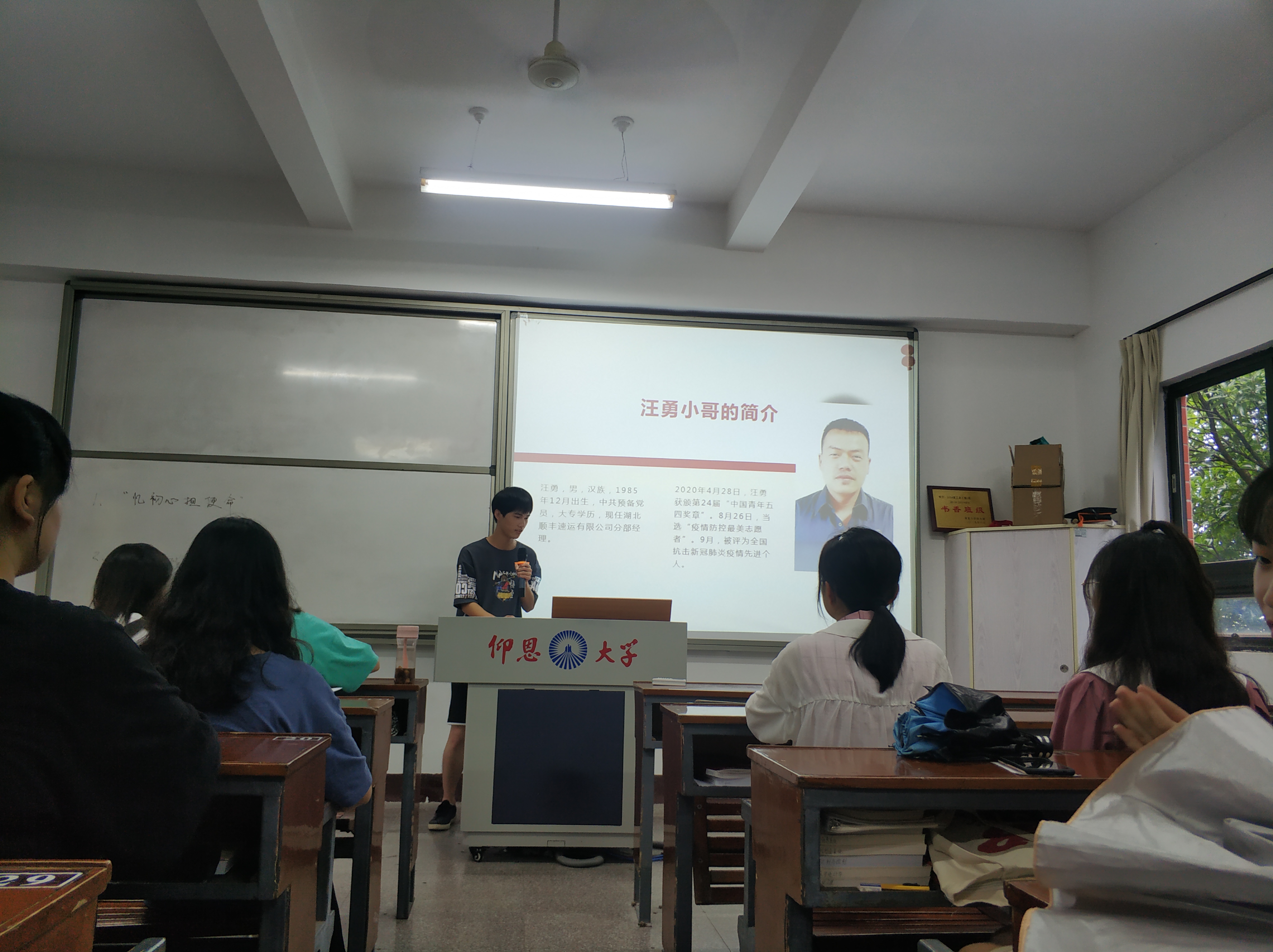 9月24日下午,公共管理系员工党支部全体同志于共和楼312举办以“抗疫天使——快递小哥汪勇”为主题的9月党课分享活动。