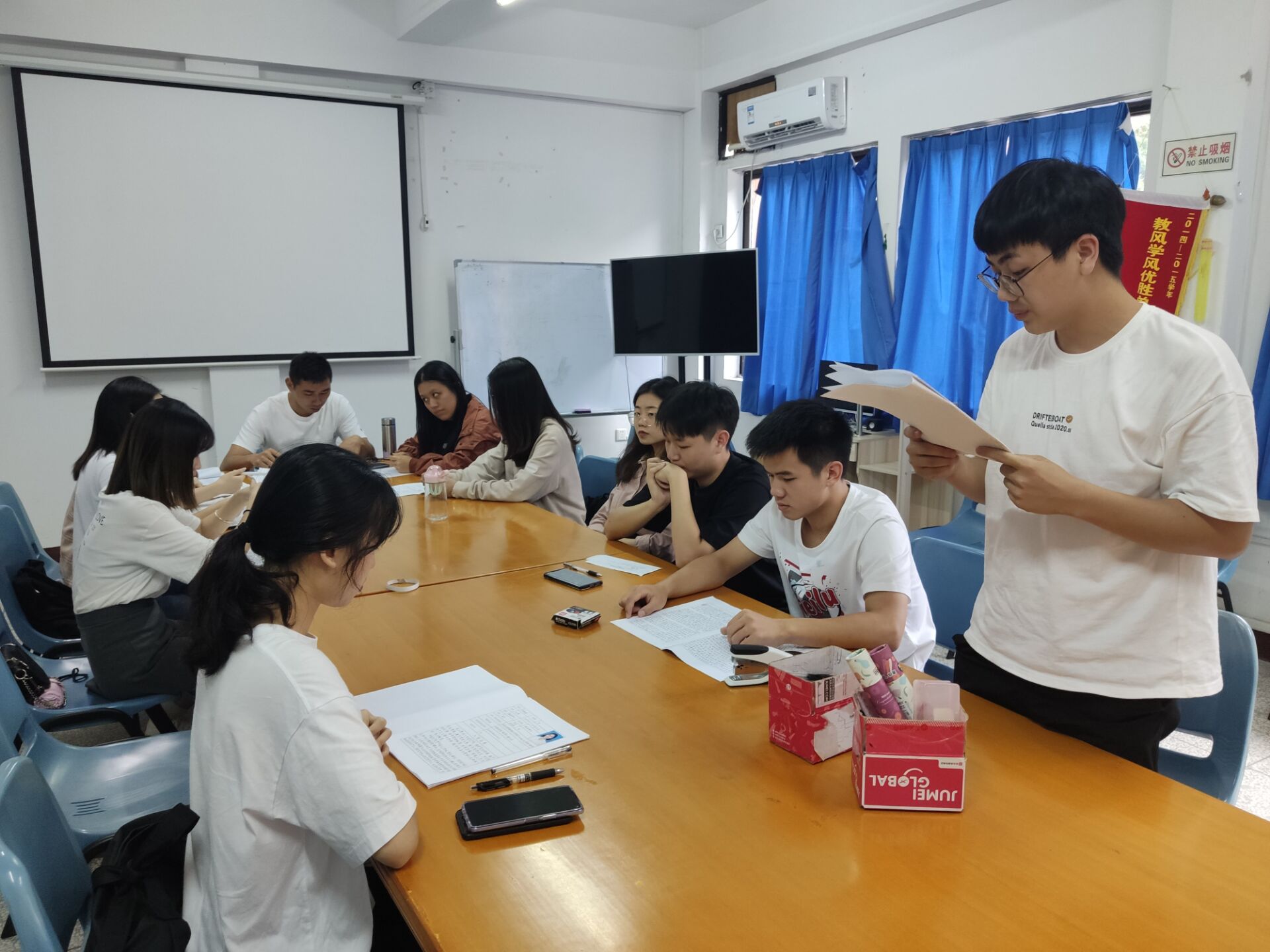 10月5日下午,公共管理系员工党支部在曼谷楼202会议室召开接收预备党员支部大会。参加此次会议的有公共管理系员工党支部的全体党员及发展对象,会议由支部书记徐鸿飞主持,对是否接收杨博、郭荣鑫等5名同志为中共预备党员进行讨论和表决。