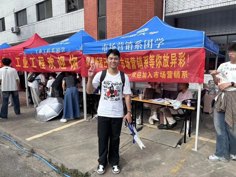 迎新现场气氛热烈,秩序井然。我系精心布置现场,搭建帐篷,清晰标注流程指引。市场营销系团学成员们分工明确、默契配合,分别在接待点和宿舍区为新生进行引导。迎新帐篷里的成员们为前来报到的新生家长们提供扇子和水并进行答疑解惑,帮助新生及家长们更好了解校园情况;分配到宿舍区的成员则负责帮助新生搬运行李,指引新同学前往注册点及宿舍楼区。市场营销系用每一处细节,让2025级市场营销学子们刚踏入校园,就真切感受到了市场营销系大家庭的包容与温度,也提前触摸到了大员工活的鲜活与活力。