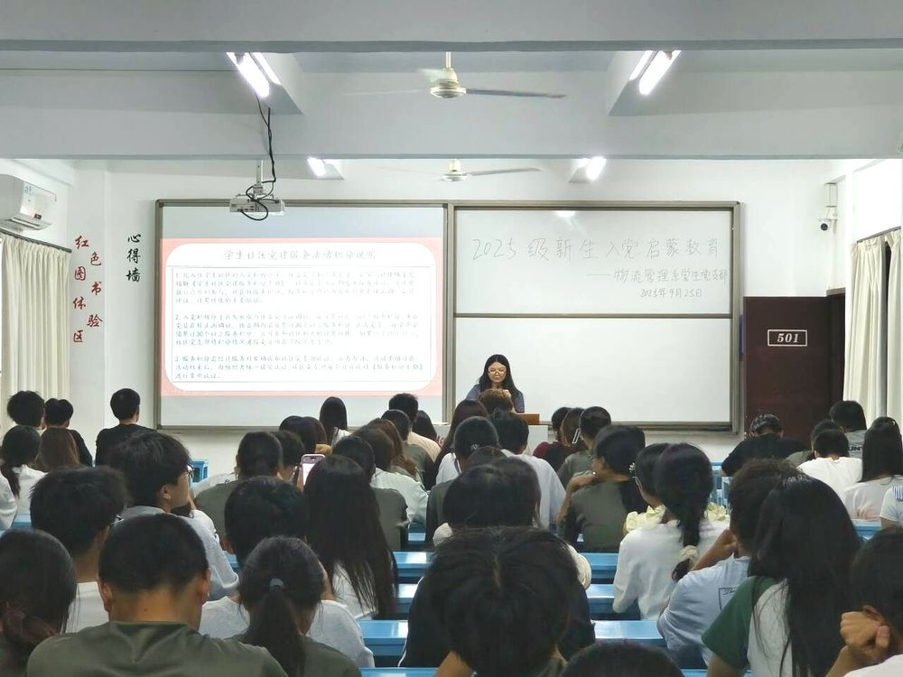 为引导2025级新生树立正确的入党动机,明确入党流程与标准,2025年09月25日物流管理系员工党支部于吉龙楼501组织开展新生入党启蒙教育活动。本次活动由张燕真同志主持,2025级物流管理系全体新生参与。