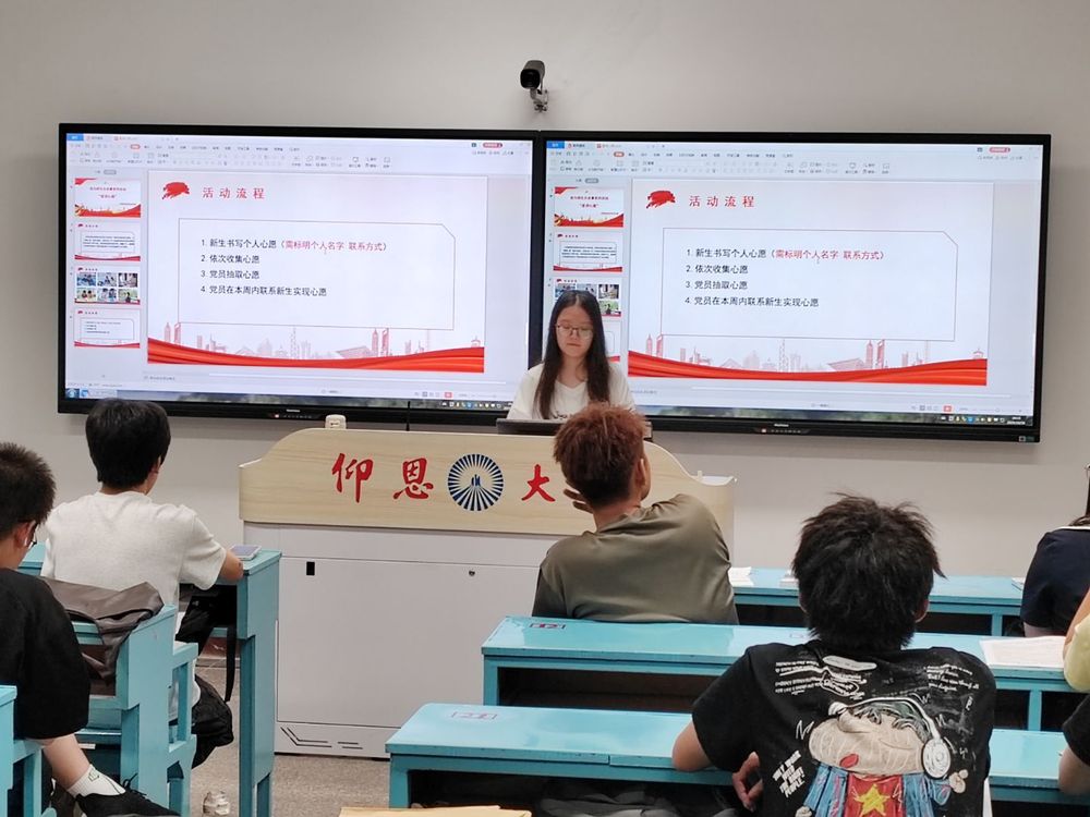 10月16日晚,市场营销系员工党支部组织党员走进2025级新生班级,开展“星语心愿”活动。党员主讲人以PPT讲解流程,引导新生分享困惑与需求,现场收集多维度“微心愿”。