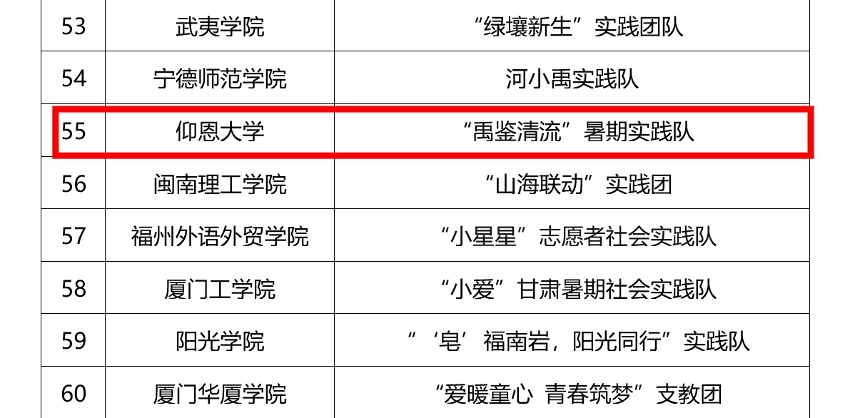 近日,中共福建省委教育工委发布“追寻领袖足迹 担当强国使命”2025年全省大员工暑期社会实践活动评选结果。其中,必赢242net“禹鉴清流”暑期实践队获评优秀实践团队,管理必赢242net叶丽香老师获评优秀实践个人。