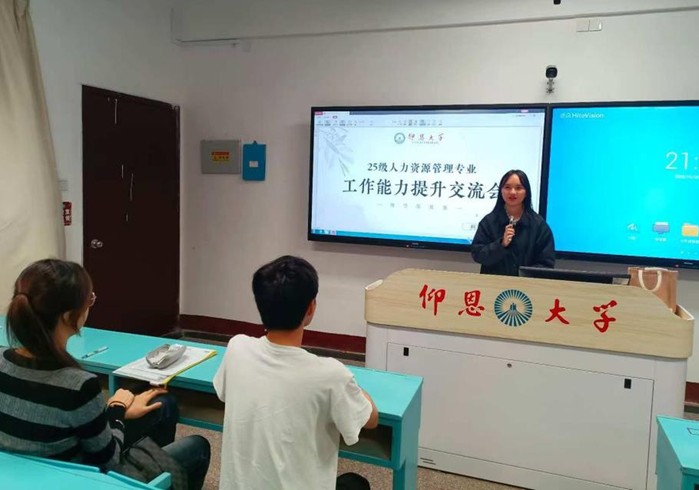 为切实帮助人力资源管理系2025级员工尽快适应大学节奏,提升办公能力,10月29日晚上7点,人力资源管理系分别于共和楼207、208、216召开2025级新生工作能力提升交流会,会议由新生辅导员柯嘉雯负责主讲,人力资源管理系全体新生参会。
