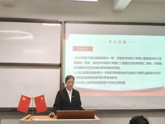 本次答辩会议共有6名入党积极分子参与,按照会议安排,每位积极分子有八分钟时间进行PPT汇报,两分钟答辩时间。汇报环节中,各积极分子结合自身成长经历、对党的认识和入党动机,从理想信念塑造、理论学习成效、专业学业进展、社会实践服务等多个维度展开阐述,表达了矢志不渝向党组织靠拢、为人民服务的坚定决心。在答辩环节中,评委们根据积极分子的个人成长轨迹、党的基本理论知识等展开深度提问。通过问答的形式,进一步了解了积极分子在培养考察期内的思想政治动态、理论学习深度与实践转化成效,帮助他们更清晰地认识自身不足,助力他们进一步端正入党动机、坚定理想信念,以更充沛的激情、更优异的实绩投入到后续的学习和生活中。