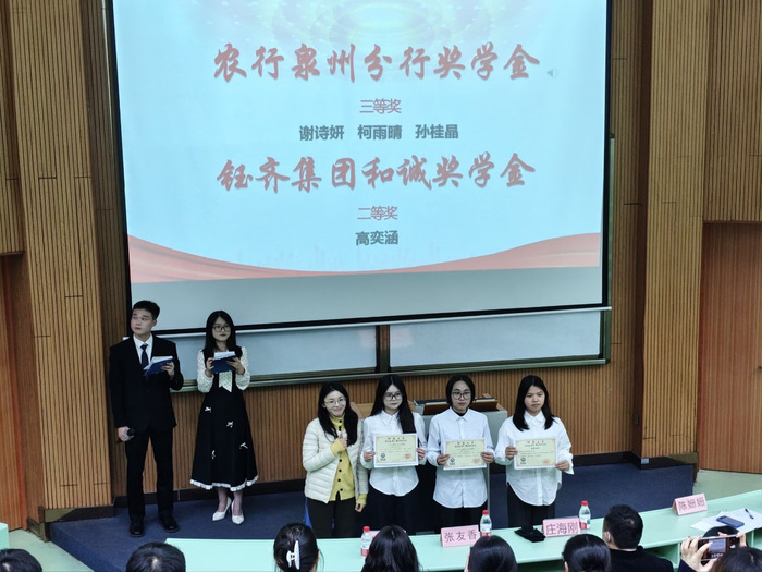 大会开场,黄雯仪老师发言,肯定学子拼搏精神与优异成绩。在体育领域中,颁布班级及个人体育道德风尚奖、优秀运动员与优秀工作者等相关奖项,此份嘉奖,致敬运动员的奋勇争先,亦感念工作人员的风雨同舟。学业与荣誉方面,颁布校级院级优秀干部及三好员工,这份表彰,致敬优秀干部的无悔奉献,亦称颂三好员工的不懈奋进。同时2023级人力1班获评校级先进集体。奖学金评选中,谢媛丽斩获国家奖学金与吴庆星奖学金,林嘉静、田颖等获国家励志奖学金,另有多名同学分获仰恩奖学金、农行泉州分行奖学金等各类专项奖学金。大会尾声,HRU各赛道获奖代表还分享了实践经验与备赛技巧,并向指导老师表达了由衷的感谢。