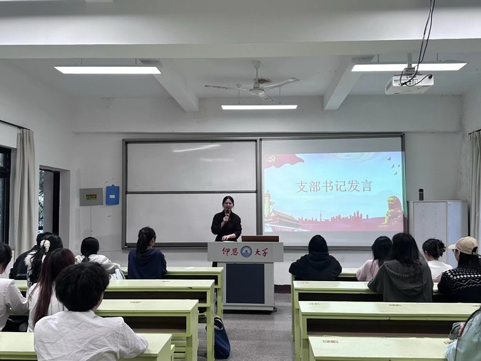大会进入尾声,支部书记连景霞同志作总结陈词,强调共产党员要牢记入党初心,自觉维护党员形象,从自己做起,带动身边同学,发挥好党员的先锋模范作用。