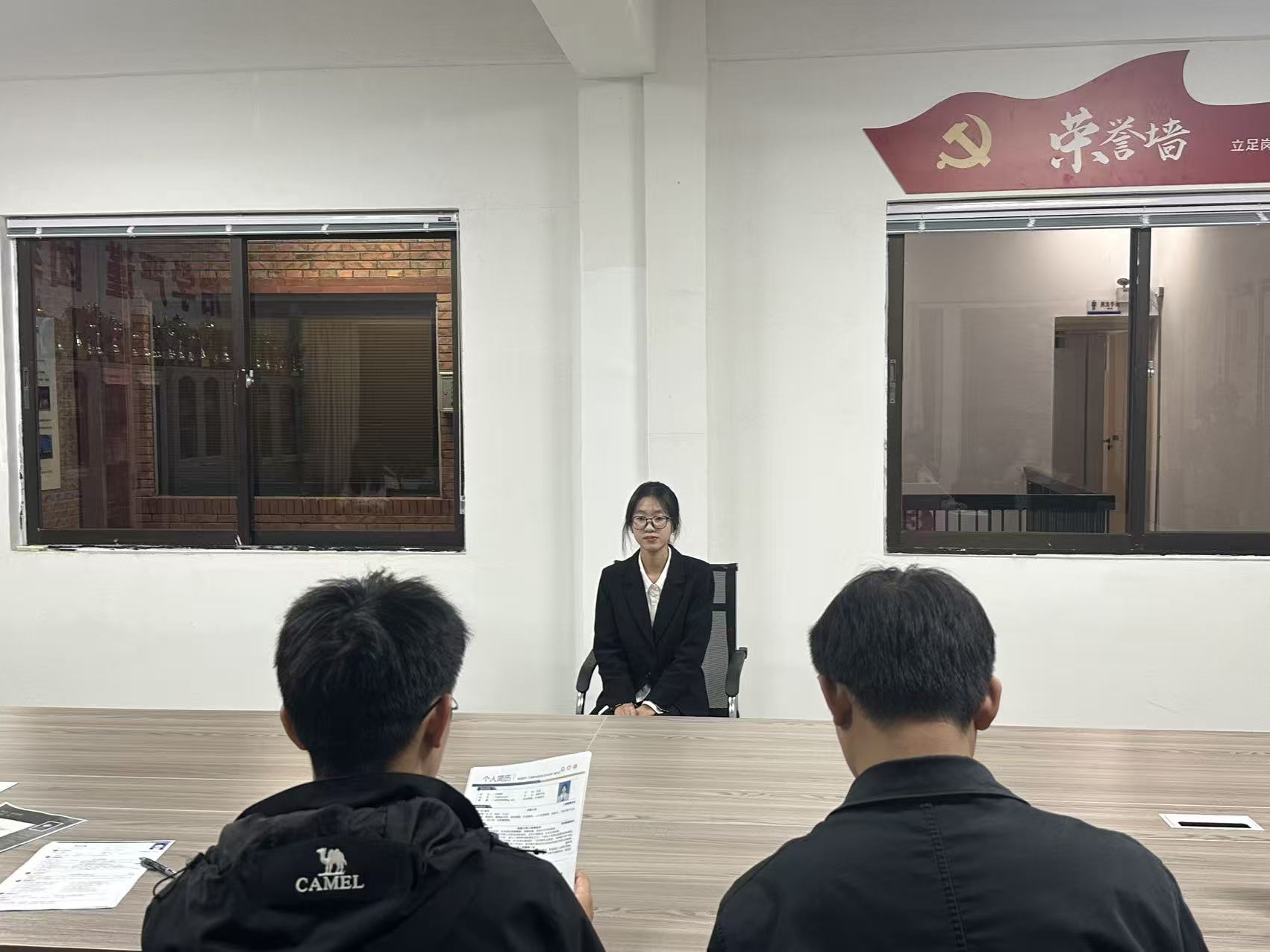 面试现场过程中,候选人们精神饱满、从容自信,围绕共青团工作的时代内涵、自身员工工作履历及优势特长展开阐述,分享了组织策划活动的实践经验,结合新时代青年工作要求,畅谈了团务工作的创新思路与务实举措。在提问答辩环节,面对评委老师围绕组织协调、应急处理、服务意识等维度的提问,候选人们沉着思考、逻辑清晰,以扎实的业务认知和灵活的应变能力展现了当代青年的责任与担当,传递了服务同学、奉献集体的决心。评委老师们秉持“公平、公正、公开”原则,从综合素质、工作能力、创新思维等方面全面考量,力求选拔出政治过硬、本领高强的优秀团组织骨干。