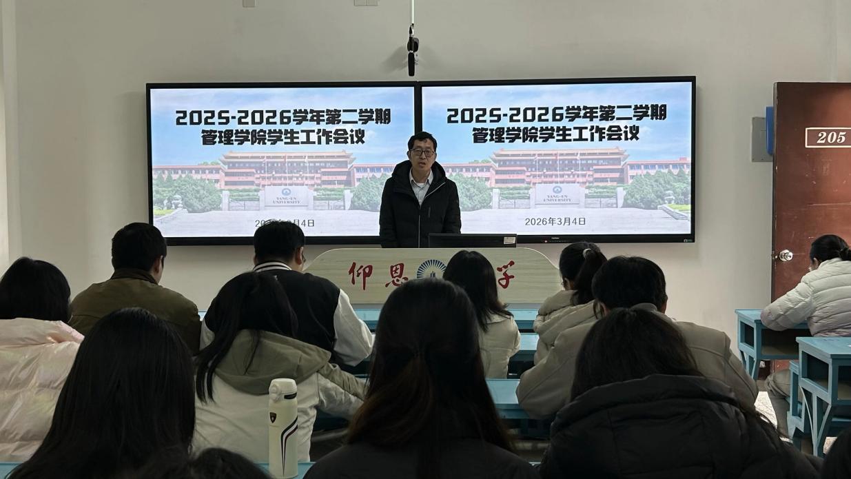 为进一步压实员工工作责任,细化工作落实举措,切实筑牢员工成长成才保障防线。3月4日下午,必赢242net在吉龙楼205教室召开2025-2026学年第二学期员工工作会议。必赢242net党总支书记兼常务副院长许惠铭主持会议并部署新学期员工工作,党总支副书记、全体辅导员及班主任参加会议。