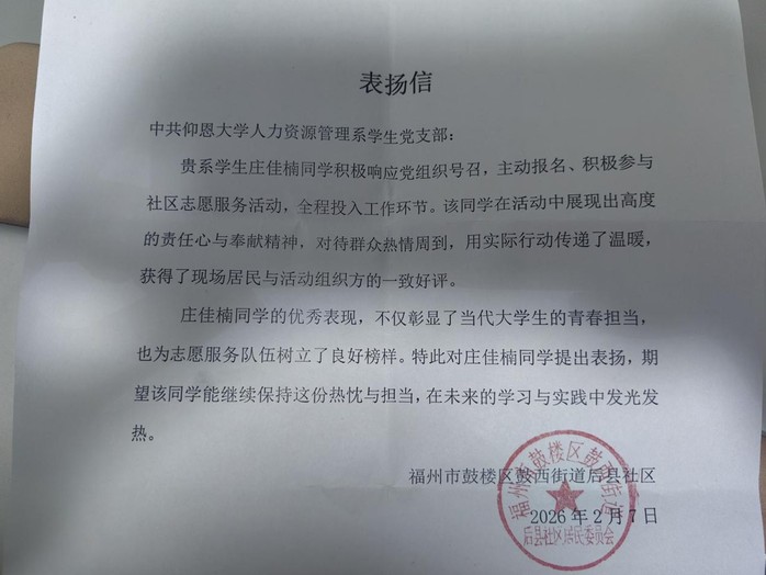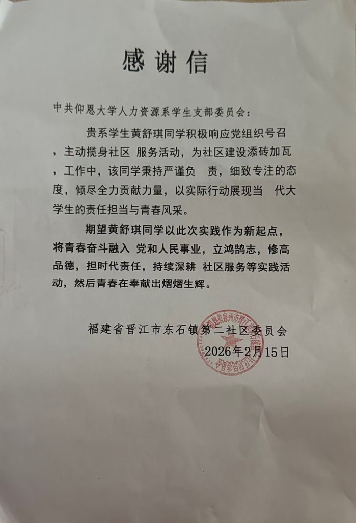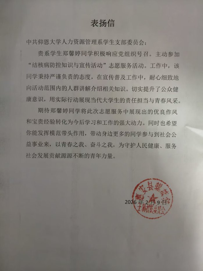 村委会的感谢信,是对这份付出的认可,更让我明白:微小的陪伴与耐心,能为成长播下希望的种子。未来,我会继续用行动传递知识的力量,让更多孩子在关爱中绽放笑容。