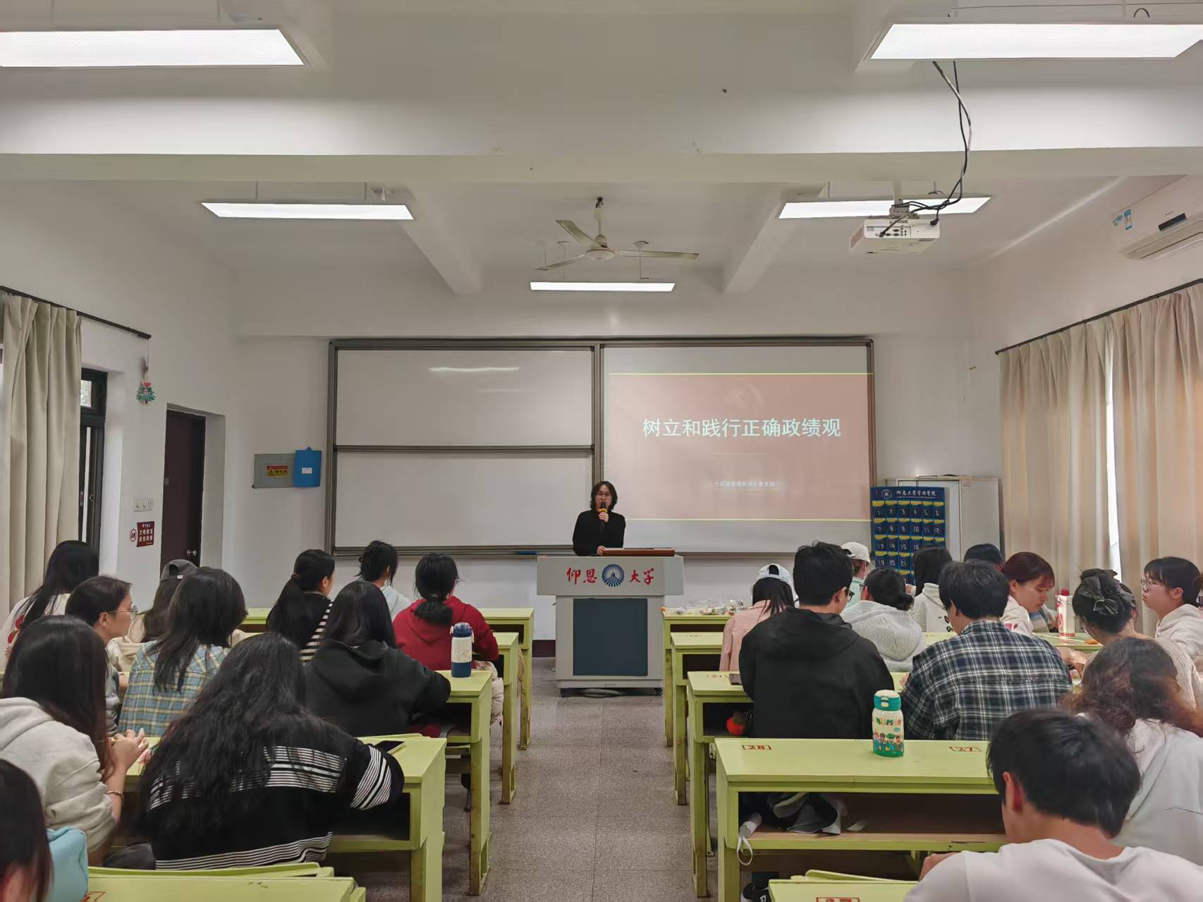 为积极响应上级党支部有关学习贯彻习近平总书记关于树立和践行正确政绩观学习教育的重要讲话和重要指示精神的工作部署,3月15日,人力资源管理系员工党支部于共和楼304开展树立和践行正确政绩观学习教育。本次学习教育由高奕涵同志主讲。
