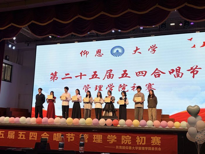 其中,25工商管理1班与24工商管理1班凭借扎实的唱功、默契的配合以及富有创意的舞台呈现,荣获本次比赛二等奖;25工商管理2班与23工商管理1班则获得了本次比赛的三等奖。此外,24工商管理2班在比赛中表现不俗,荣获优秀奖,其积极参与和认真准备的态度值得肯定。本次五四合唱节初赛的顺利举办,不仅是一场音乐的较量,更是一次生动的爱国主义教育与集体主义精神的展现。比赛充分展现了工商管理系学子积极向上、团结奋进的精神风貌,增强了各班级的凝聚力与向心力。希望各班级带着这份热忱与朝气,将其化为前行的不竭动力,在更广阔的人生舞台上奏响更加绚丽的青春华章!