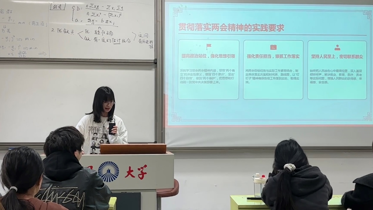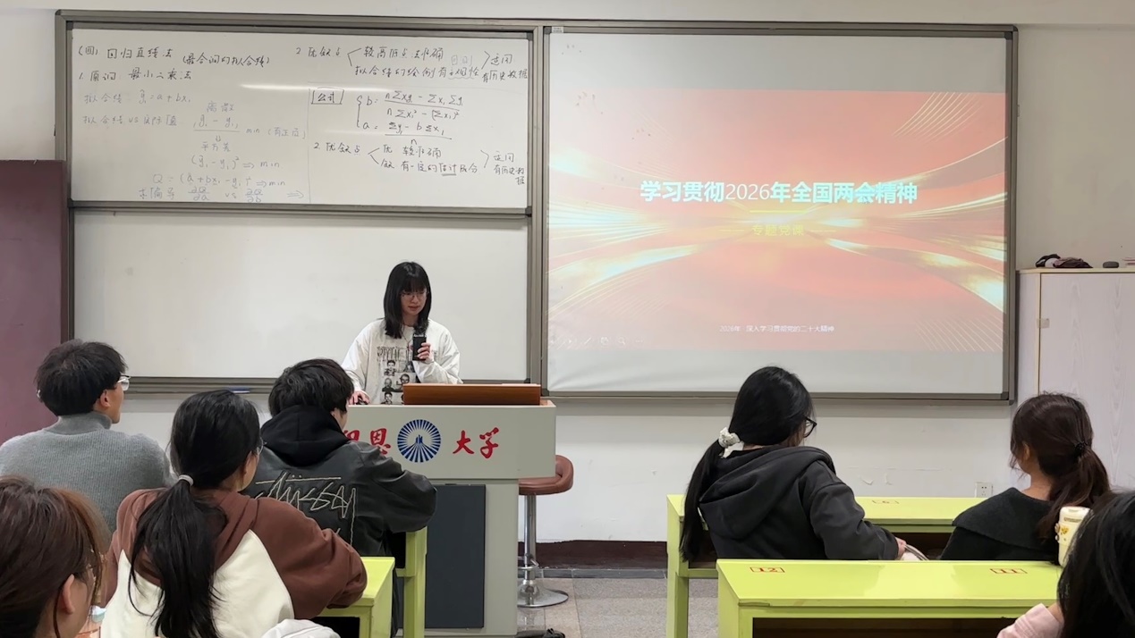 为深入学习贯彻2026年全国两会精神,切实把思想和行动统一到党中央决策部署上来,工商管理系员工党支部于2026年03月19日在共和楼301教室组织开展“学习贯彻2026年全国两会精神”专题党课,引导全体党员深刻领会两会核心要义,凝聚砥砺奋进十五五的强大合力。