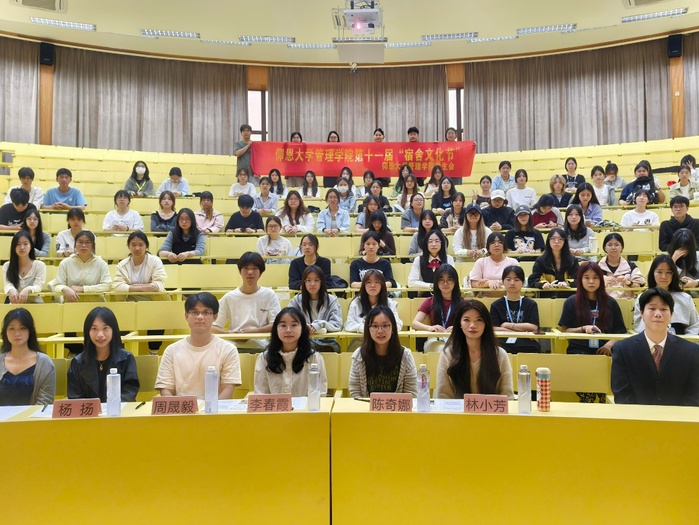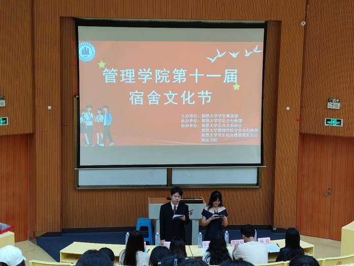 活动伊始,主持人登场致辞,宣布宿舍文化节正式拉开帷幕。各宿舍依次上台展示,通过精心制作的PPT或者播放温馨有趣的Vlog,细致地介绍了宿舍布置与日常点滴,展现了独特的宿舍风采。部分宿舍还献上了活力满满的舞蹈表演,青春洋溢,瞬间点燃全场气氛。展示结束后进入评委评分环节。等待结果期间,主持人与观众开展趣味互动游戏,如数字炸弹,猜手机号码等,现场欢乐不断。比赛结果为:一等奖——衡山楼511,二等奖——华山楼509 衡山楼518,三等奖——华山楼501华山楼313。