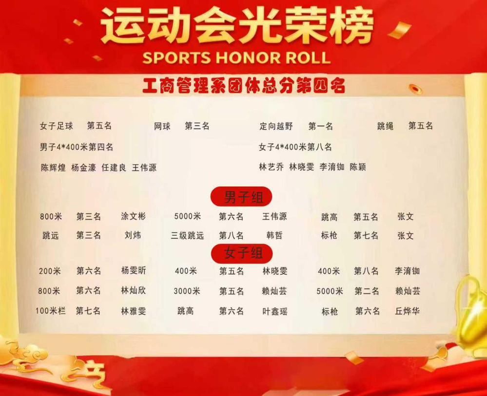 工商管理系荣获第三十四届运动会团体总分第四名